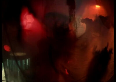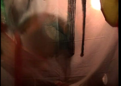 Fata Morgana (2004) was a collaborative video installation by Davina Semo and myself that emerged out of a 3-month long dialogue about the concept of “post-queer,” which resulted in the exhibition Paradigm Proliferation Promiscuity Perversion.  The project explored the physical possibilities of sexuality and sex when gender is fully unhinged from biology.  We used shadow puppet monsters, and with them abstract form, and environmental elements: rhythm, sound, textures and colors to communicate degrees of sexuality and play.   We were dealing with sex as unknowable, unable to be fixed. Sex as something not  discrete or identifiable, but rather a vague feeling and suspicion: a sensation deep in the body.